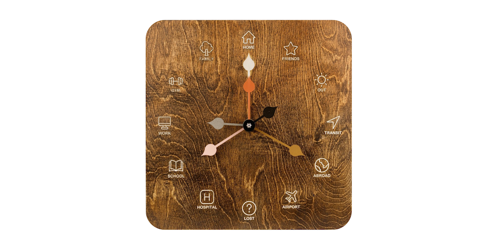 The Original Stata Clock shown in Walnut and paired with our fun set of colored hands.