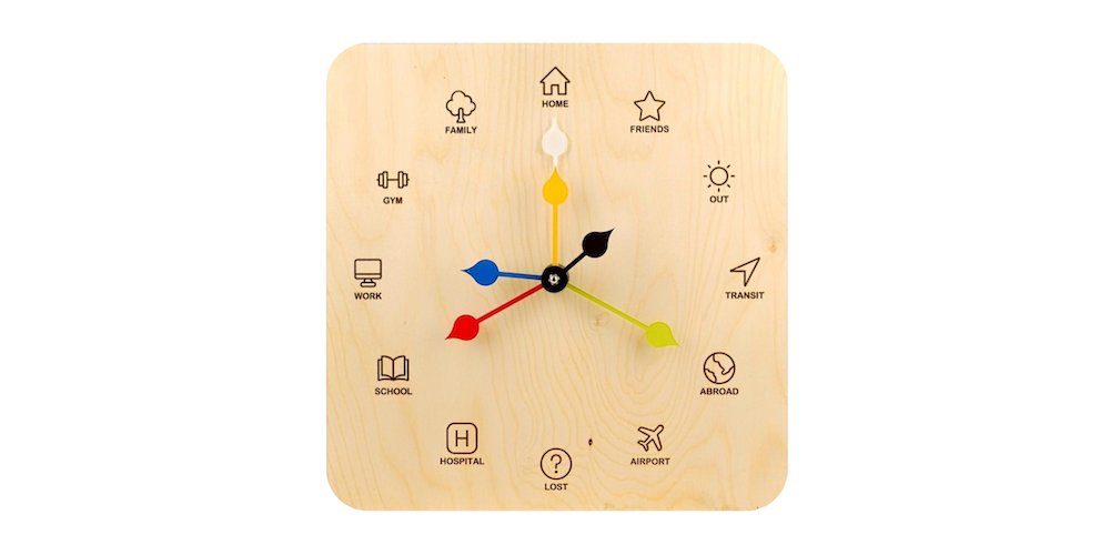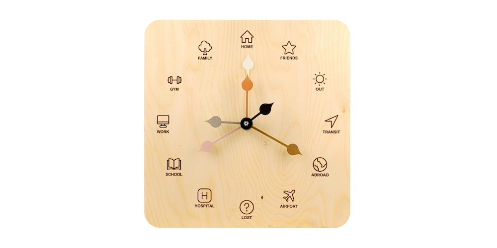 The Original Stata Clock shown in Oak and paired with our fun set of colored hands.