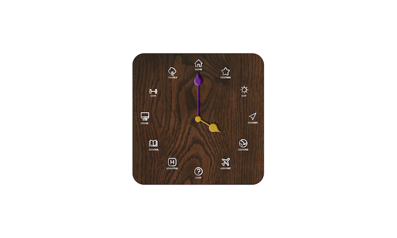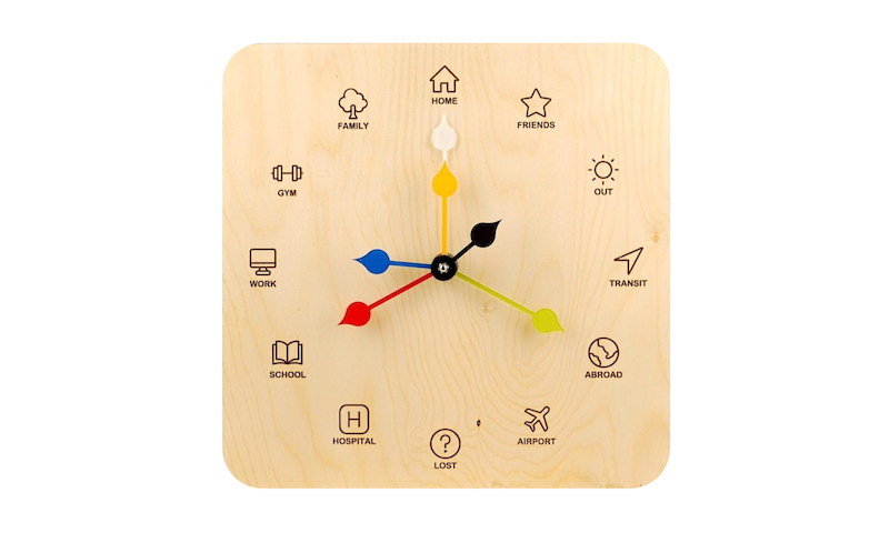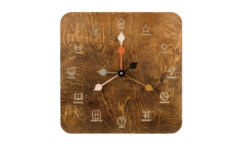 The Mini Stata Clock shown in Oak and paired with our fun set of colored hands.