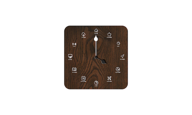 The Stata Clock is available in two sizes, two wood finishes, and comes with a set of hands in